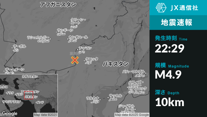 | 震源地 | パキスタンのChamanから南南西67kmの地点 |