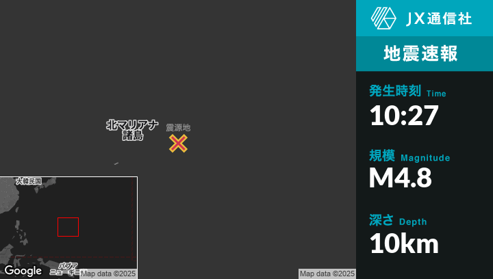 10月06日 10:27頃、北マリアナ諸島のSaipanから東南東158kmの地点でM4.8の地震がありました。