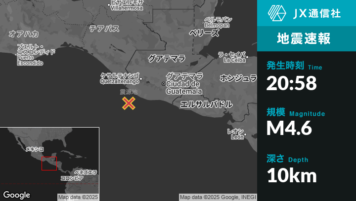 | 震源地 | グアテマラのChampericoから南南西46kmの地点 |