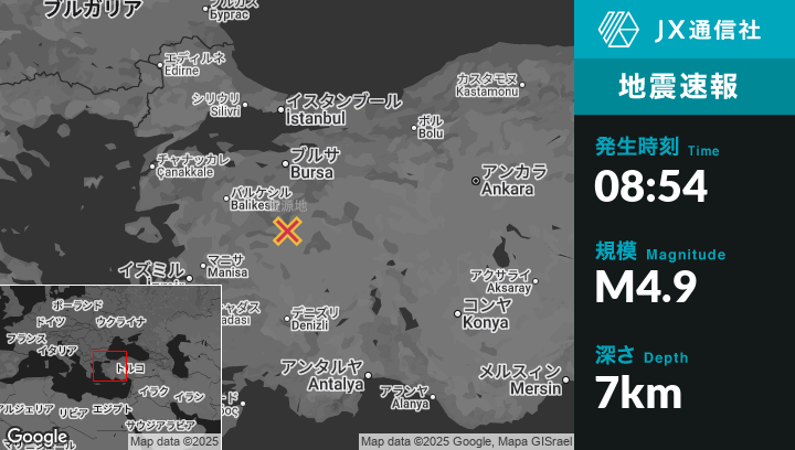 | 震源地 | トルコのEmetから南西17kmの地点 |