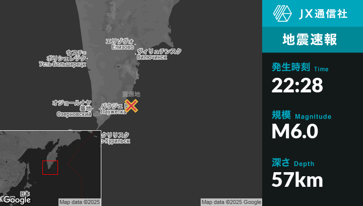 | 震源地 | ロシアのOzernovskiyから東119kmの地点 |