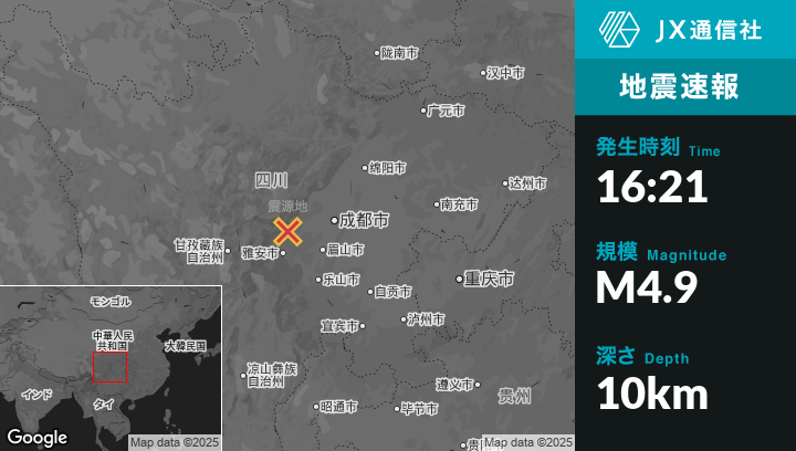 10月12日 16:21頃、中国のLinqiongから西北西32kmの地点でM4.9の地震がありました。