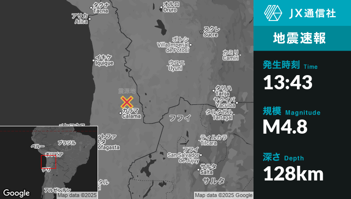 | 震源地 | チリのCalamaから北北東70kmの地点 |
