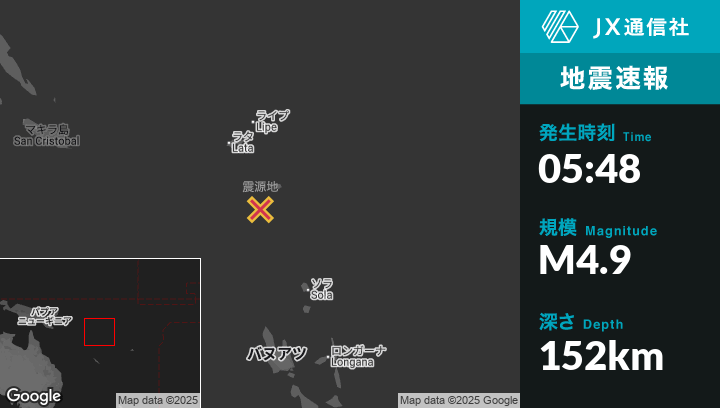 | 震源地 | ソロモン諸島のLataから南南東163kmの地点 |