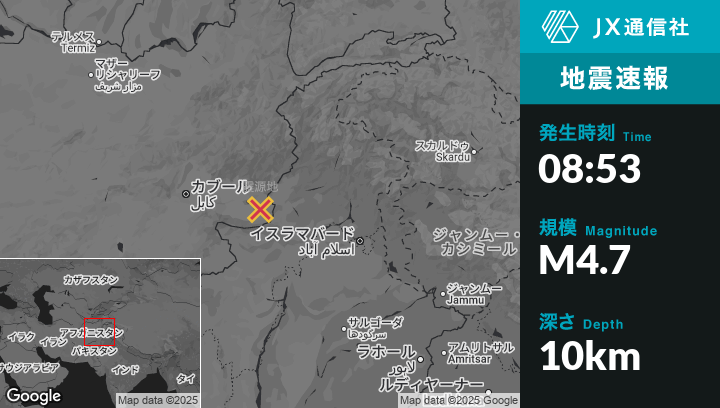 10月17日 08:53頃、アフガニスタンのBāsawulから北北西15kmの地点でM4.7の地震がありました。