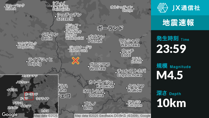 | 震源地 | ポーランドのPolkowiceから南4kmの地点 |