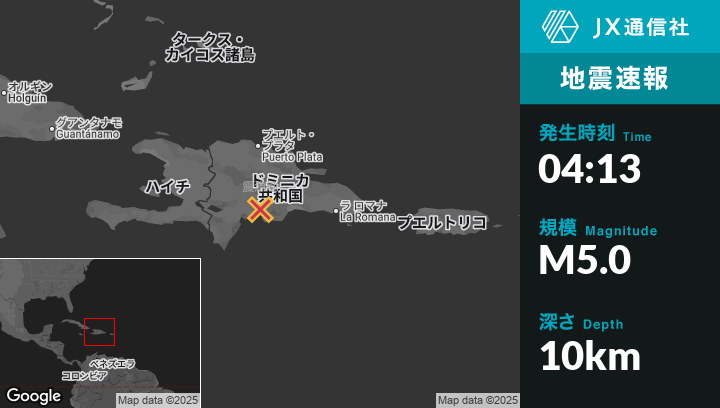 | 震源地 | ドミニカ共和国のEstebaníaから北13kmの地点 |