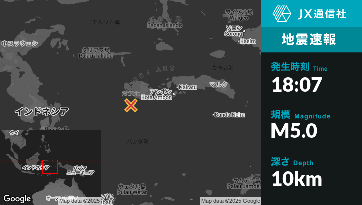 | 震源地 | インドネシアのAmbonから西212kmの地点 |