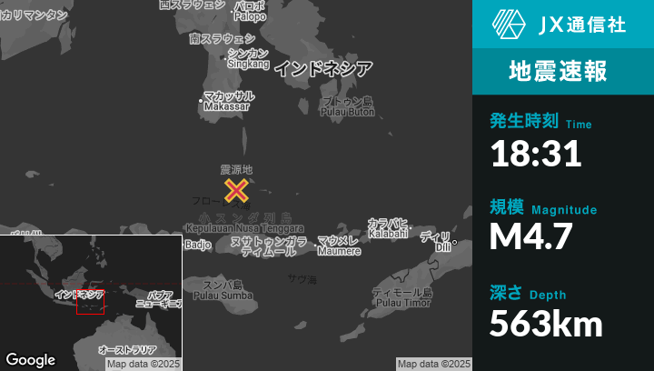 | 震源地 | インドネシアのLabuan Bajoから北北東151kmの地点 |