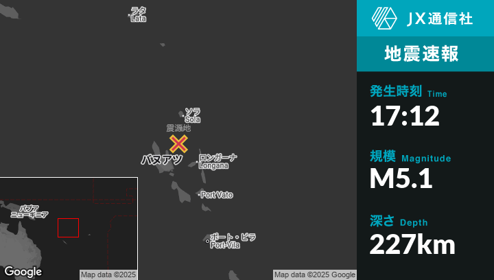 | 震源地 | バヌアツのPort-Olryから北東57kmの地点 |