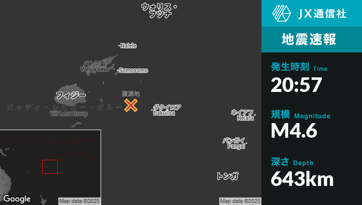 | 震源地 | フィジーのLevukaから東134kmの地点 |