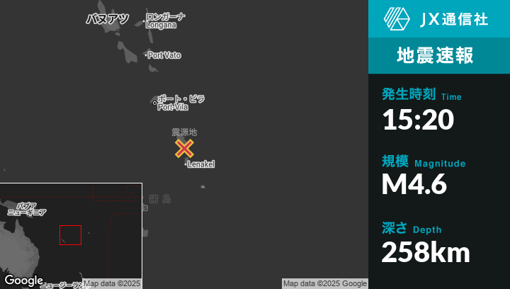 | 震源地 | バヌアツのIsangelから北65kmの地点 |