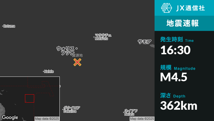 | 震源地 | ウォリス・フツナのAloから南東105kmの地点 |