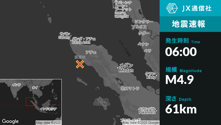 | 震源地 | インドネシアのMeulabohから南西27kmの地点 |