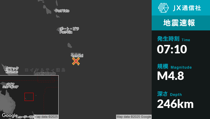 | 震源地 | バヌアツのIsangelから南東46kmの地点 |