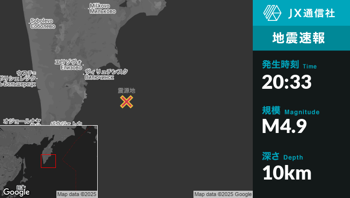 | 震源地 | ロシアのPetropavlovsk-Kamchatskyから南東146kmの地点 |