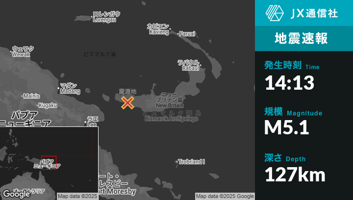 | 震源地 | パプアニューギニアのKandrianから北西88kmの地点 |