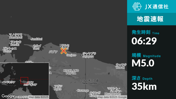| 震源地 | インドネシアのAbepuraから西北西188kmの地点 |