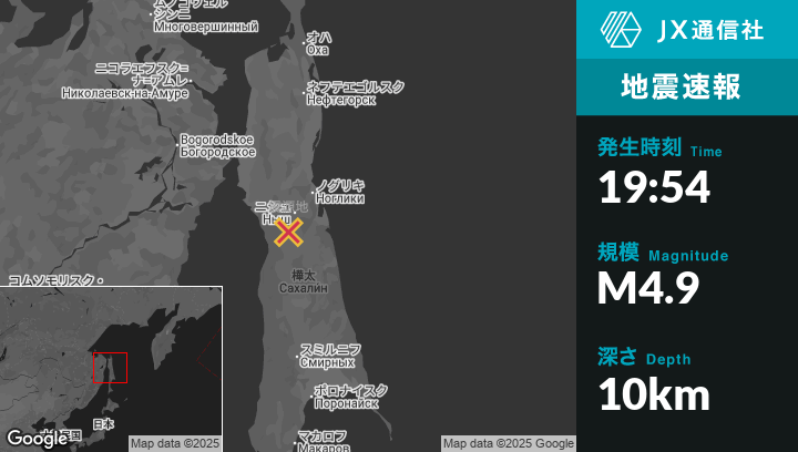 | 震源地 | ロシアのMgachiから北東46kmの地点 |