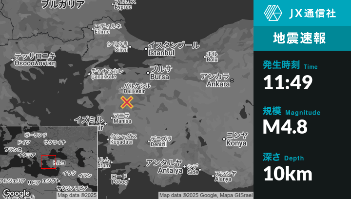 | 震源地 | トルコのSındırgıから西北西6kmの地点 |