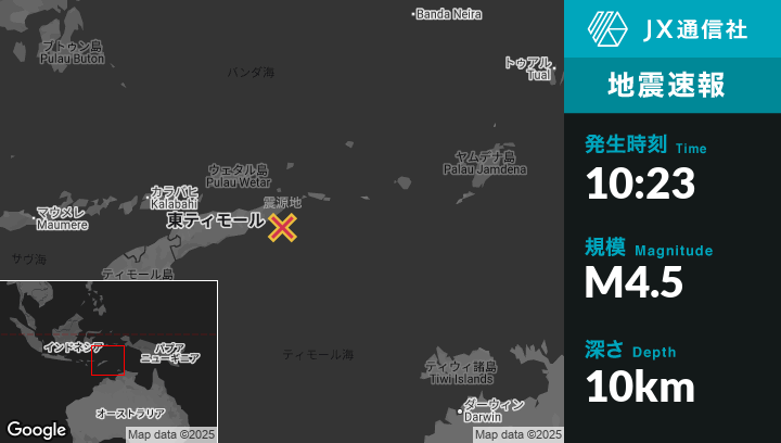 | 震源地 | 東ティモールのLospalosから東南東31kmの地点 |