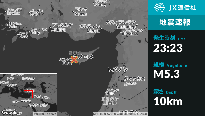 | 震源地 | キプロスのMeládeiaから南東3kmの地点 |