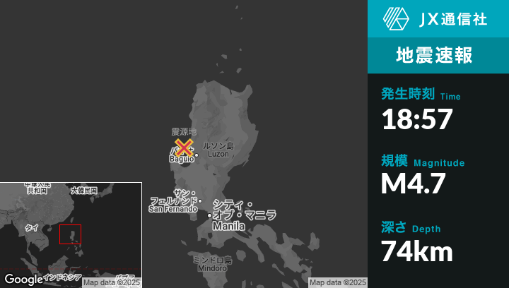 | 震源地 | フィリピンのBacnotanから西17kmの地点 |
