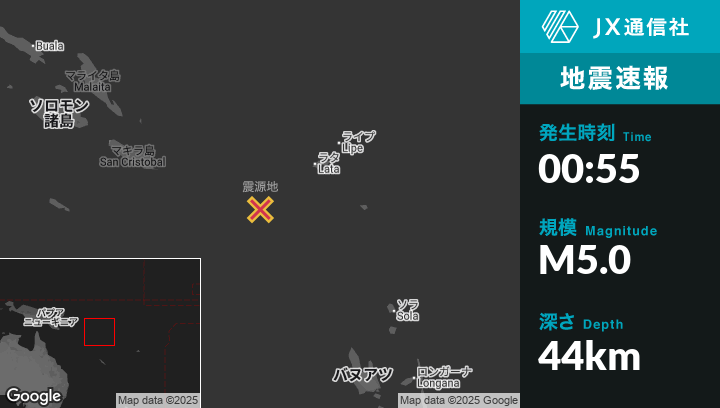 | 震源地 | ソロモン諸島のLataから南西163kmの地点 |