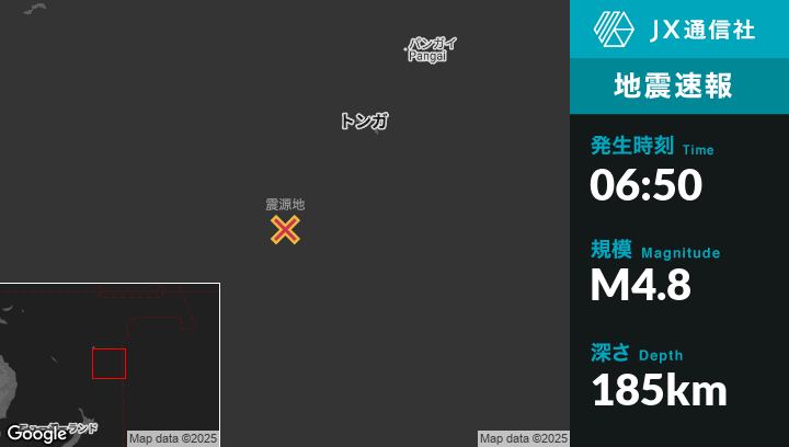 | 震源地 | トンガのHoumaから南西258kmの地点 |