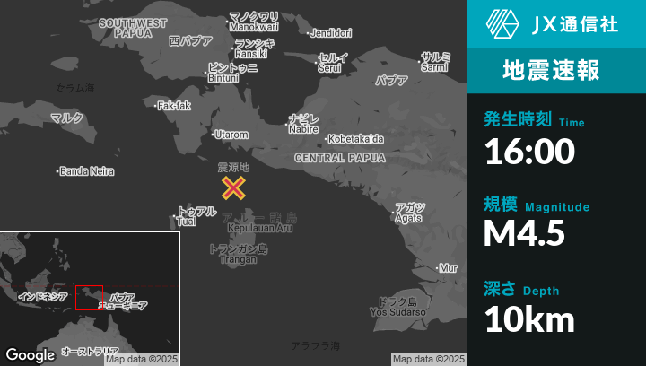 | 震源地 | インドネシアのTualから東北東184kmの地点 |
