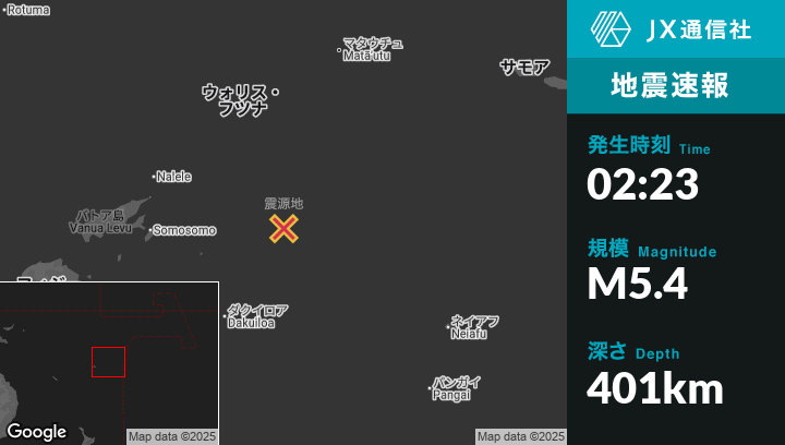 12月18日 02:23頃、ウォリス・フツナのAloから南南東272kmの地点でM5.4の地震がありました。