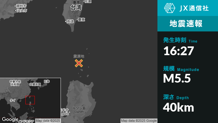 | 震源地 | フィリピンのBascoから南西96kmの地点 |