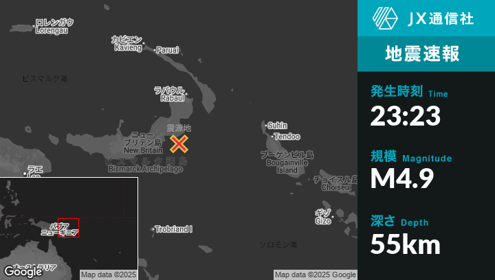 | 震源地 | パプアニューギニアのKokopoから南南西150kmの地点 |