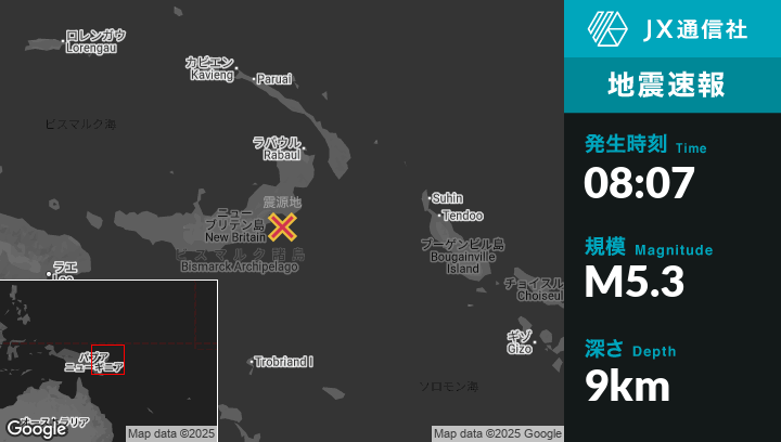 | 震源地 | パプアニューギニアのKokopoから南南西157kmの地点 |
