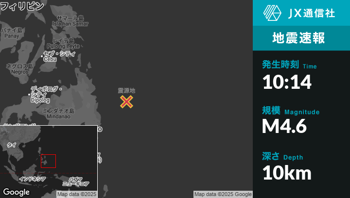 | 震源地 | フィリピンのBarcelonaから東144kmの地点 |