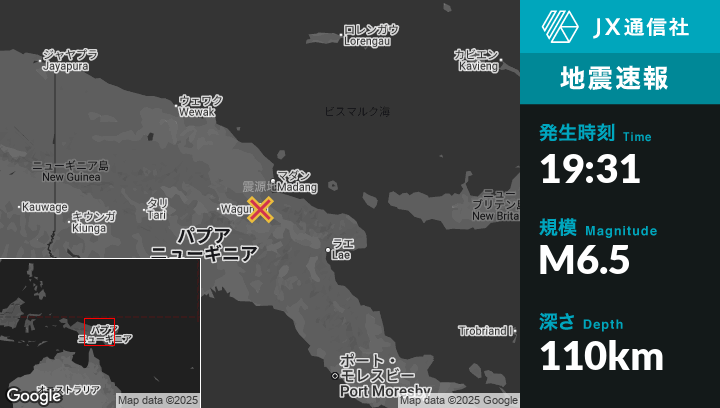 | 震源地 | パプアニューギニアのGorokaから北北東42kmの地点 |