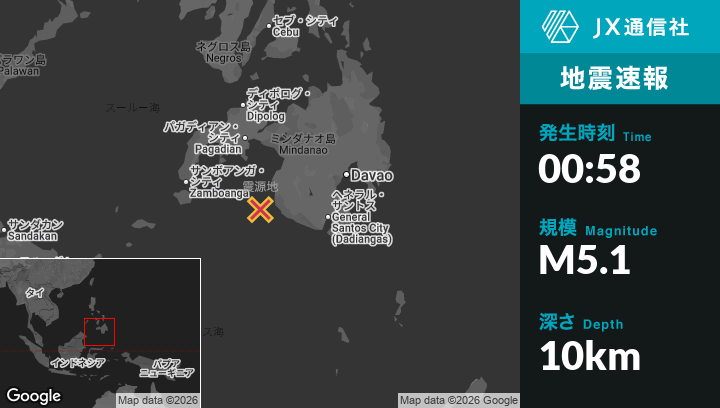 | 震源地 | フィリピンのSangayから西37kmの地点 |