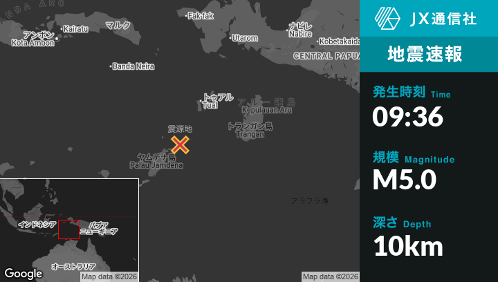 | 震源地 | インドネシアのTualから南南西155kmの地点 |