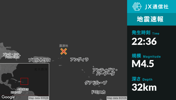 | 震源地 | アメリカ領ヴァージン諸島のCruz Bayから北北東85kmの地点 |