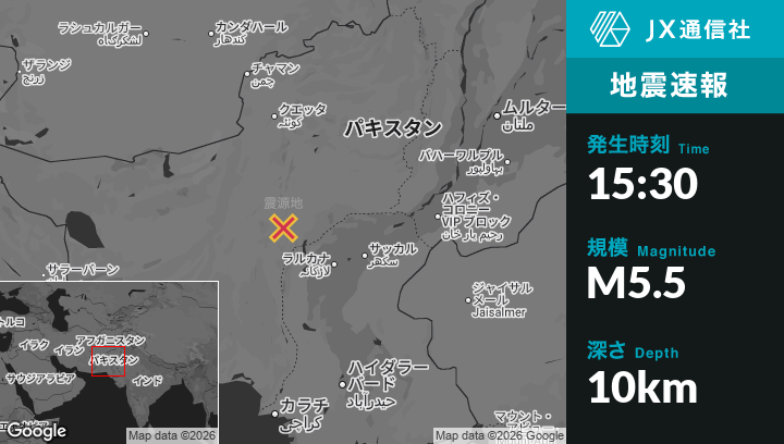 | 震源地 | パキスタンのKhuzdarから北東79kmの地点 |