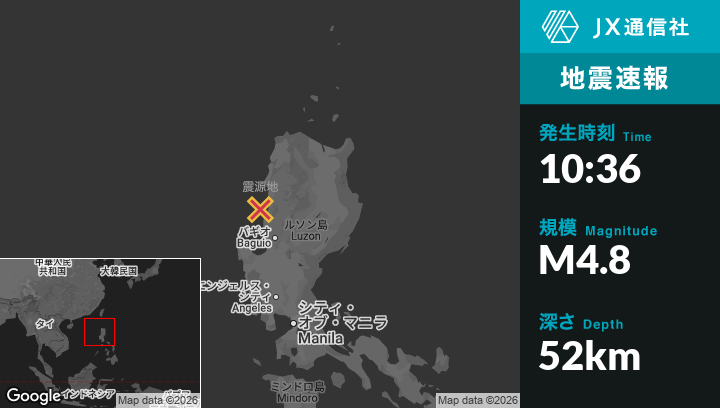 | 震源地 | フィリピンのCalongbuyanから西南西18kmの地点 |