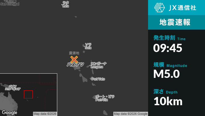 | 震源地 | バヌアツのPort-Olryから北西48kmの地点 |