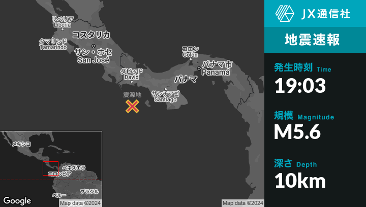 | 震源地 | パナマのBuricaから南東78kmの地点 |