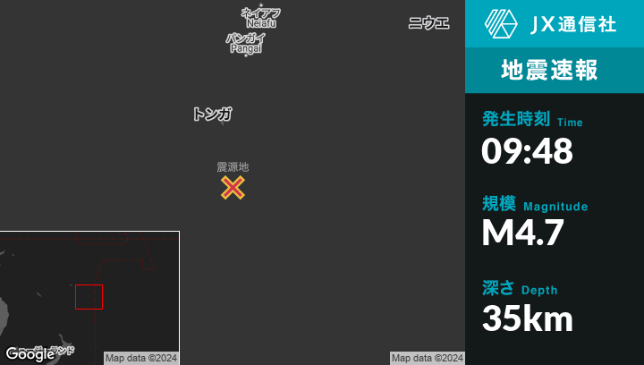 | 震源地 | トンガの‘Ohonuaから南155kmの地点 |
