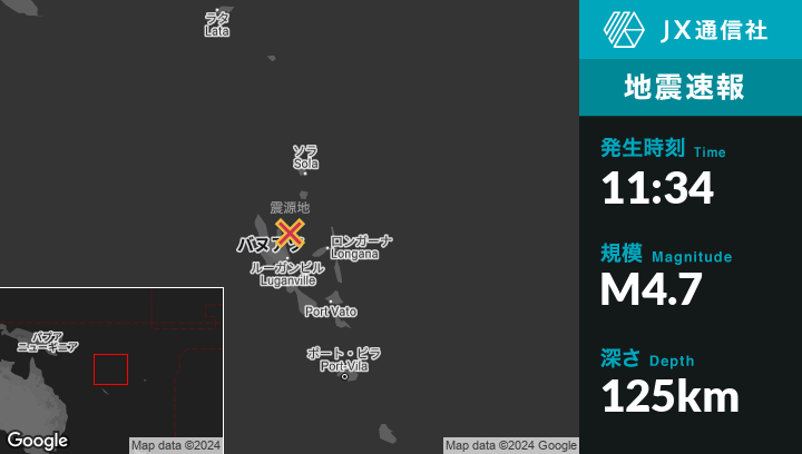 | 震源地 | バヌアツのPort-Olryから北東23kmの地点 |