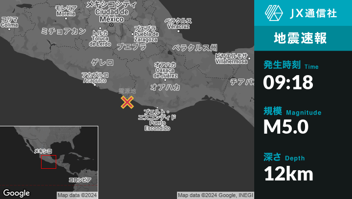 | 震源地 | メキシコのSantiago Tepextlaから南11kmの地点 |