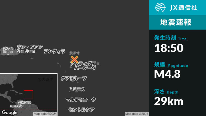 | 震源地 | アンティグア・バーブーダのCodringtonから東北東33kmの地点 |