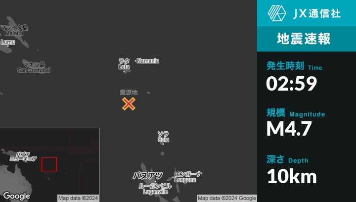 | 震源地 | ソロモン諸島のLataから南143kmの地点 |