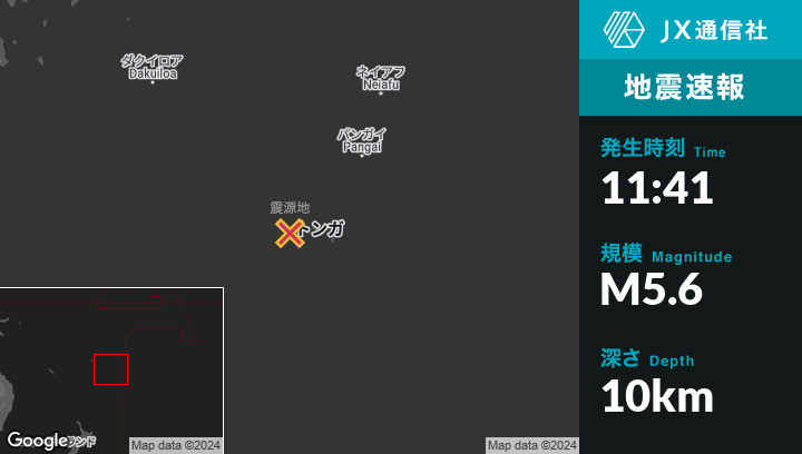 11月19日 11:41頃、トンガのHoumaから西50kmの地点でM5.6の地震がありました。
