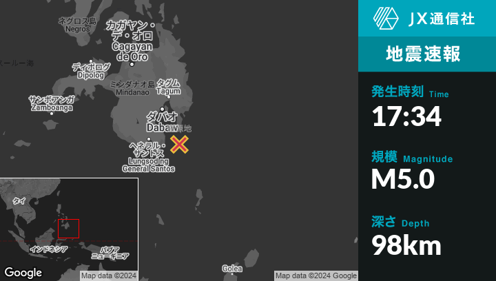 | 震源地 | フィリピンのPondaguitanから南31kmの地点 |